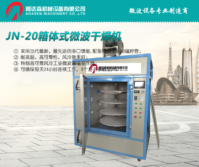 JN-20箱體式微波干燥機(jī)是一種常用的食品微波干燥設(shè)備,適用于各種食品的干燥和殺菌。下面是JN-20箱體式微波干燥機(jī)的介紹: