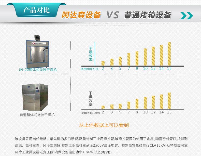 高效性能:JN-20箱體式微波干燥機(jī)具有干燥速度快、干燥效果好的特點(diǎn)。微波能量可在較短的時(shí)間內(nèi)均勻地傳遞到食品中,實(shí)現(xiàn)快速干燥和殺菌,提高生產(chǎn)效率。